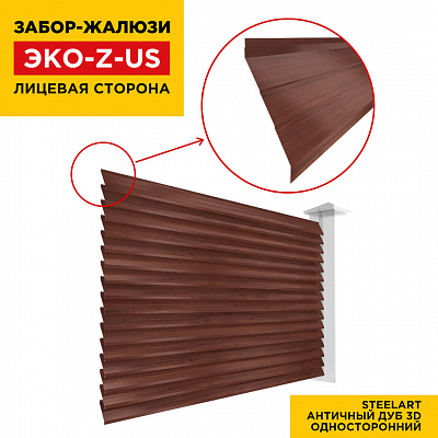Ламель ЭКО-Z-US усиленная Античный Дуб SteelArt для забора-жалюзи